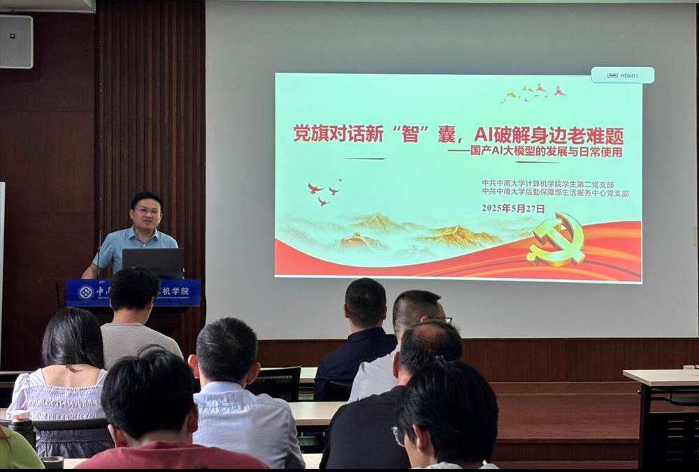 为加强学习习近平总书记关于加快发展新质生产力的重要指示精神,推动国产人工智能技术走进校园、服务师生,2025年5月27日下午,龙8在线登录官网-龙8(中国)学生第二党支部与后勤保障部生活服务中心党支部在计算机楼313教室联合开展了“党旗对话新‘智’囊,AI破解身边老难题——国产AI大模型的发展与日常使用”主题党日活动。