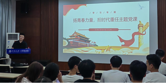 为做好毕业生党员离校教育工作,2022年6月10日,院学生二支部支部书记许宁在计算机楼313为支部全体党员讲授主题党课——《扬青春力量,担时代重任》。