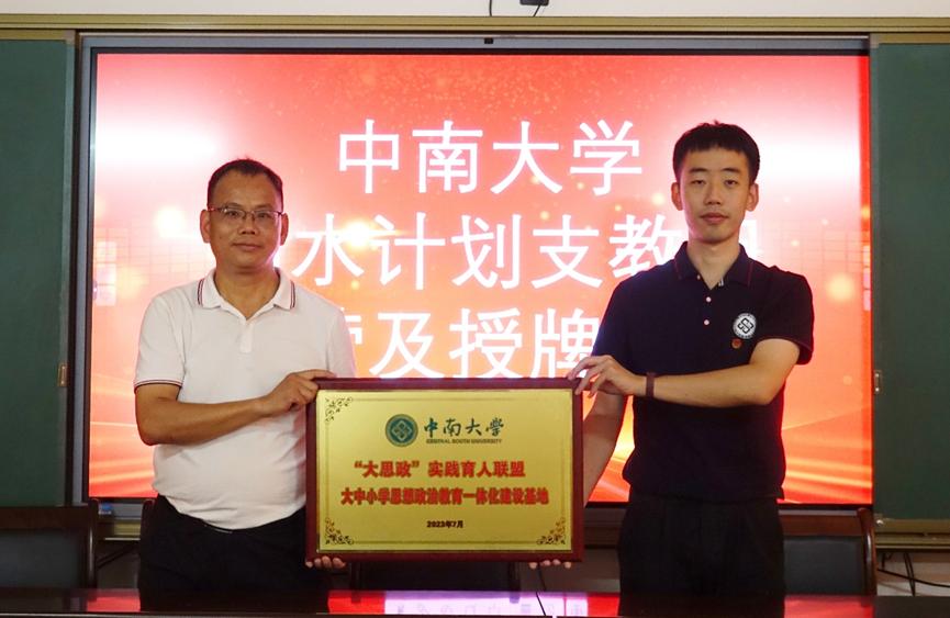 会议最后,授牌仪式正式进行,在全体成员的热烈掌声中,中南大学大中小学思想政治教育一体化建设基地于沱江镇第四小学正式挂牌建立。